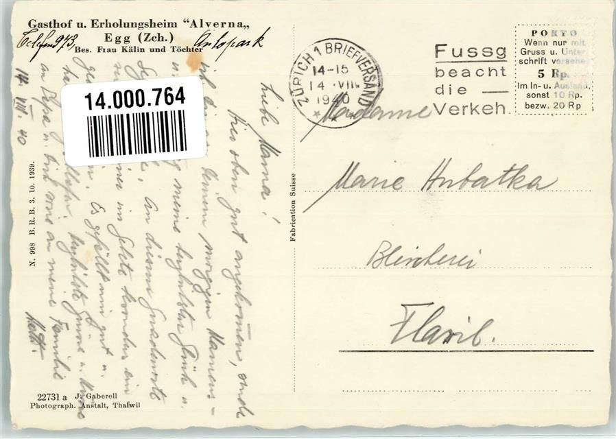 8132 Egg bei Zürich 1940 Foto AK Gasthaus Pension Alverna Fliegeraufnahme