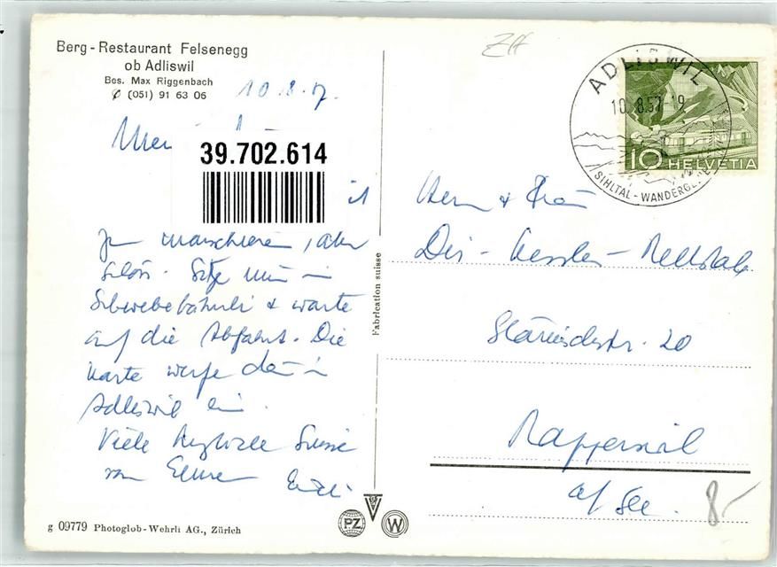 8134 Adliswil - Gasthaus Felsenegg Seilbahn