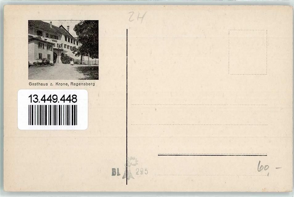 8158 Regensberg 1298 Lithographie Gasthaus zur Krone