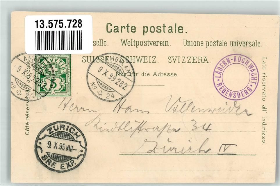 Regensberg, Gasthaus zur Hohen Wacht Trigometrisches Signal Lithographie Bahnpost Zug 282