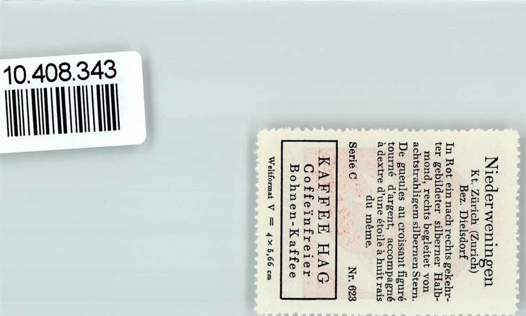 8166 Niederweningen - Vignette Wappen Kaffee Hag ca 1920-1940 Mond Stern