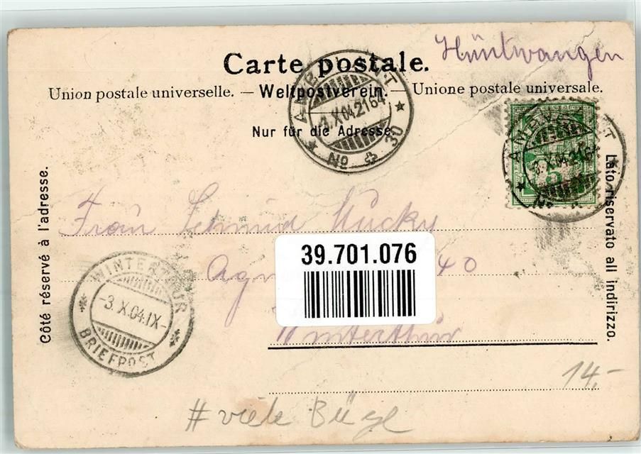 8193 Eglisau 1904 Gebrauchsspuren Bahnpost Strecke 30 Zug 2164 viele Büge