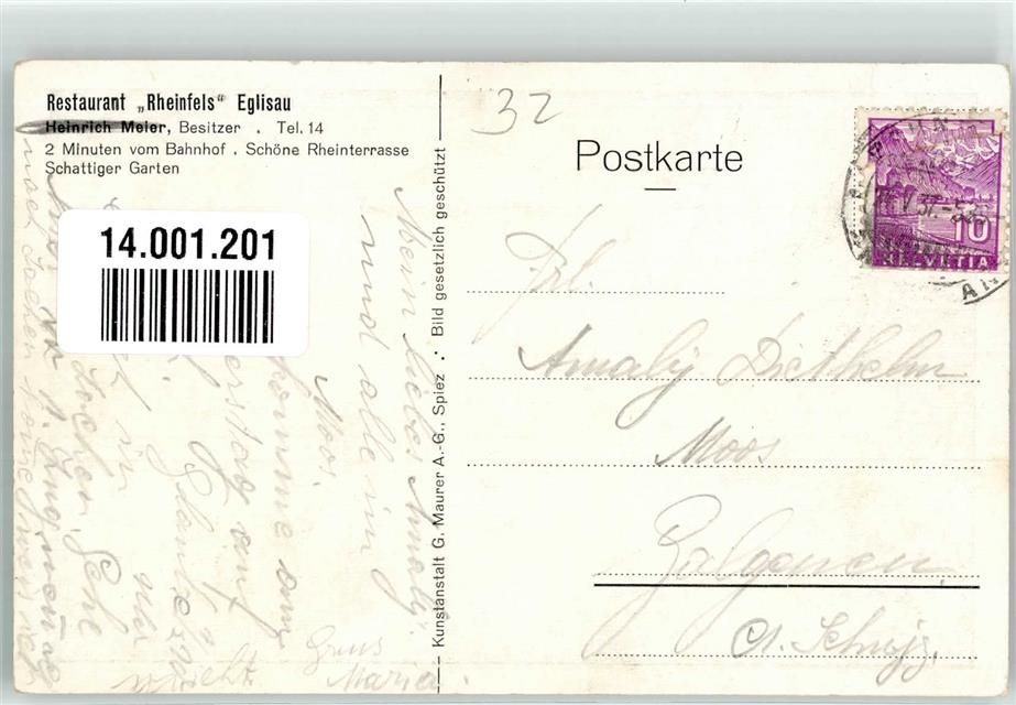 8193 Eglisau 1937 Foto AK Gasthaus Rheinfels