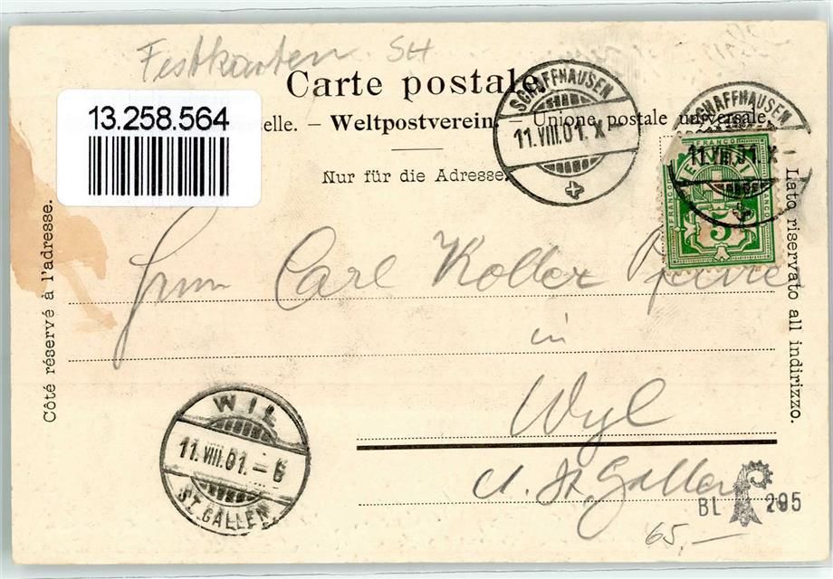 8200 Schaffhausen Sciaffusa 1901 Lithographie 4. Jahrhundertfeier des Eintritts in den Bund der Eidgenossen