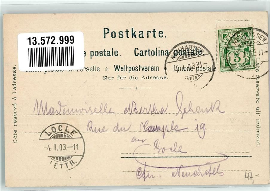 8200 Schaffhausen Sciaffusa 1903 Lithographie sign. Steinmann, C. Bahnhof Postamt Straßenbahn Künstler-Postkarte