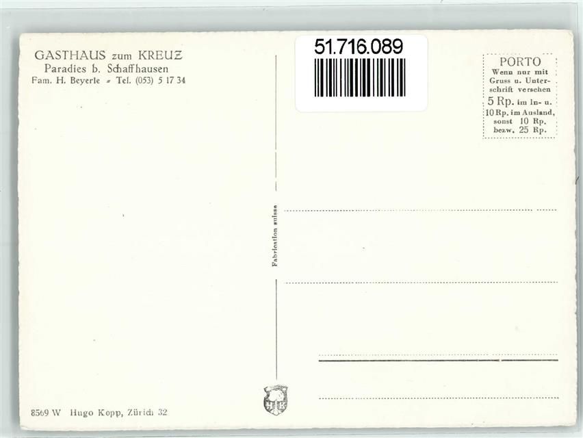 8200 Schaffhausen Sciaffusa - Gasthaus zum Kreuz Paradies
