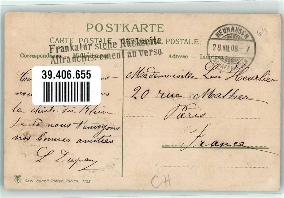 8212 Neuhausen am Rheinfall 1908 Mondschein