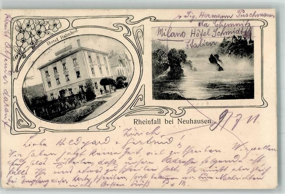 8212 Neuhausen am Rheinfall 1911 Foto AK Hotel Bahnhof Rheinfall