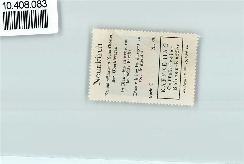 8213 Neunkirch - Vignette Wappen Kaffee Hag ca 1920-1940 Kirche