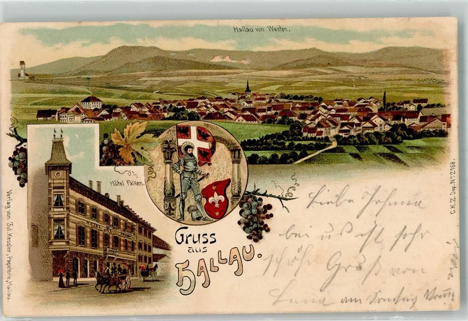 8215 Hallau 1900 Gebrauchsspuren Lithographie Hotel Falken