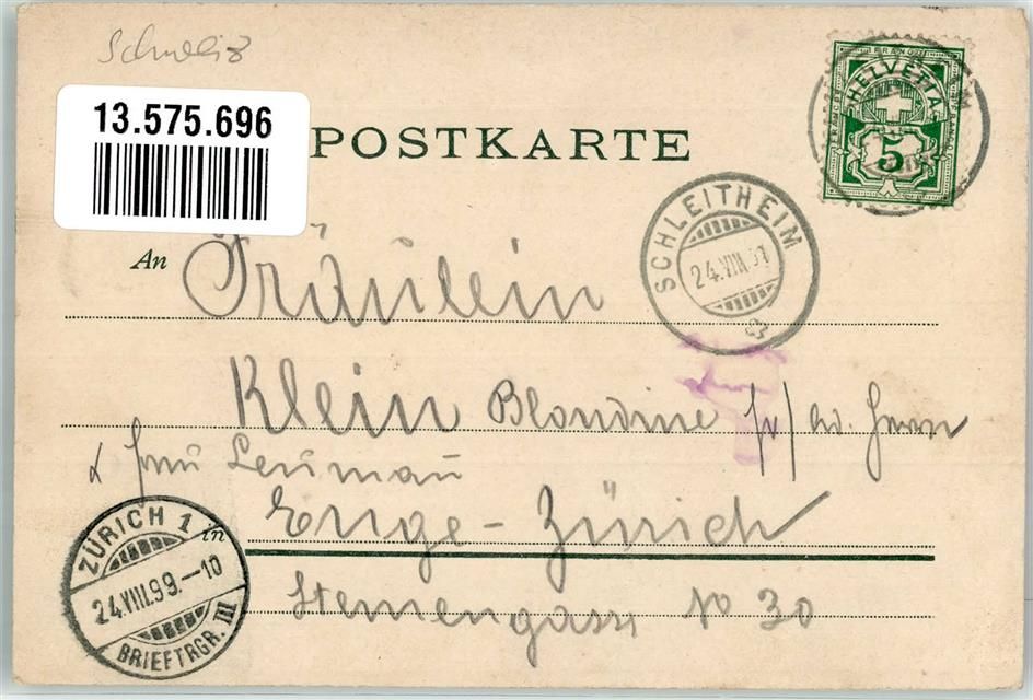 8226 Schleitheim 1899 Gebrauchsspuren Gasthaus zum Hirschen
