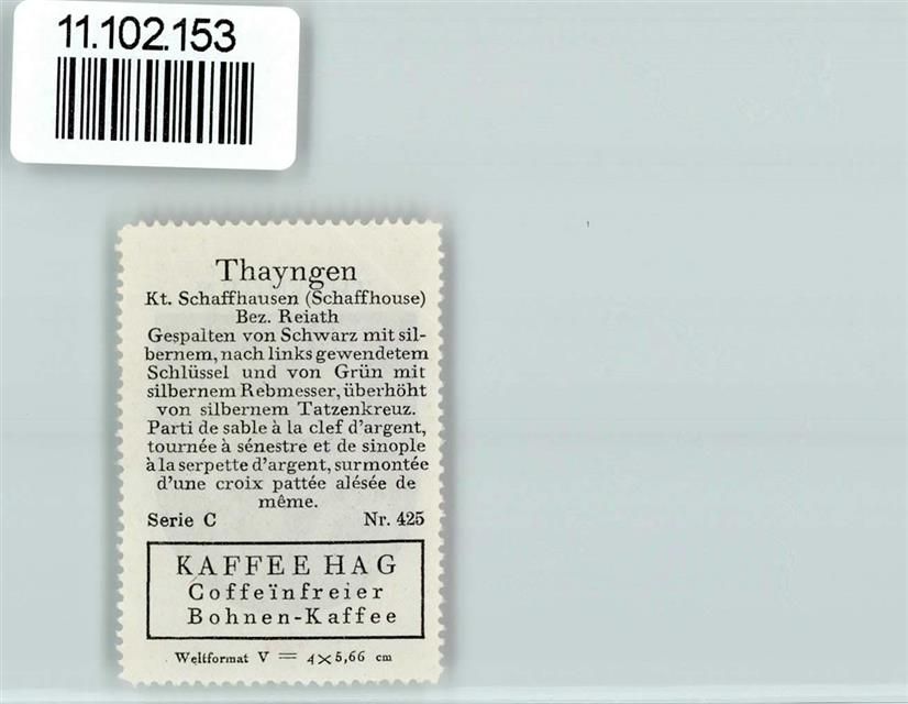 Thayngen, Vignette Wappen Kaffee Hag ca 1920-1940