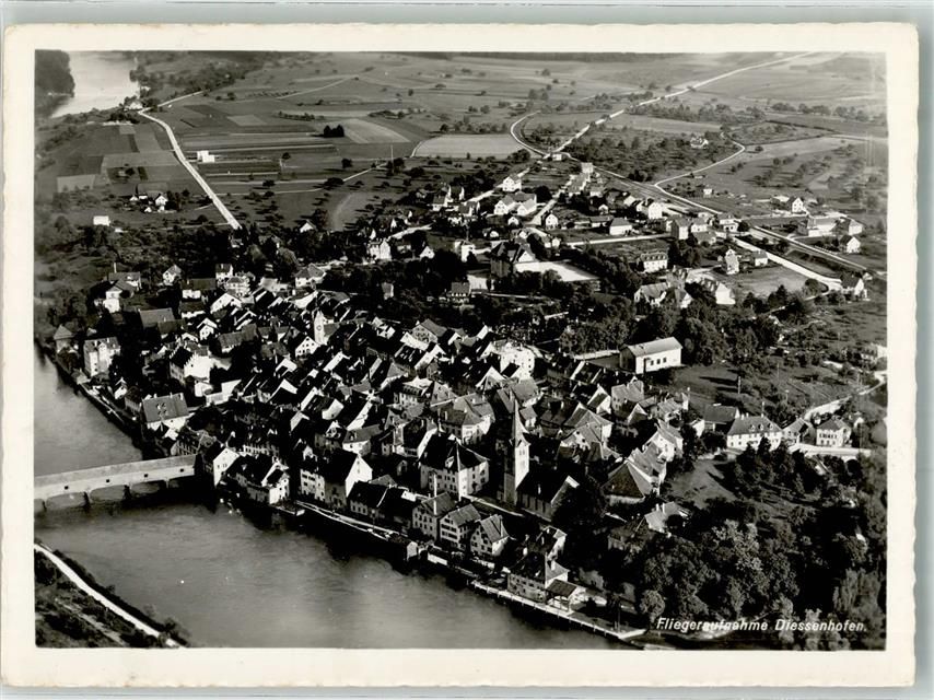 8253 Diessenhofen 1959 Foto AK Fliegeraufnahme Bahnpost Zug 4824