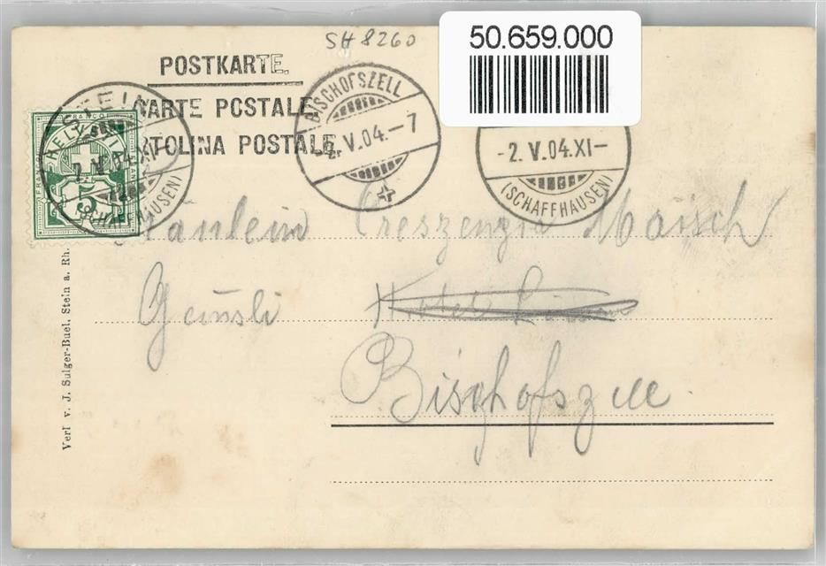 8260 Stein am Rhein - Teilansicht, Boot, Fluss