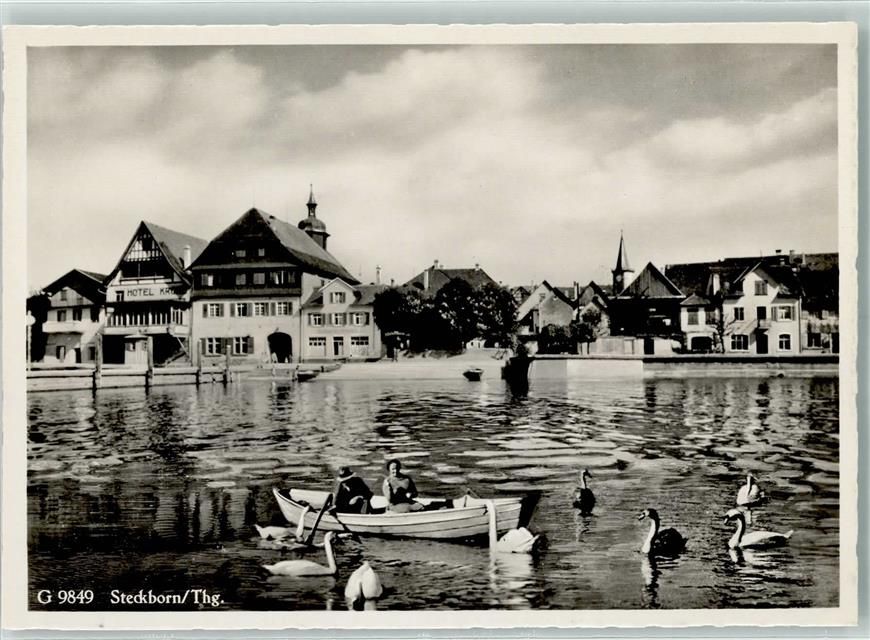 8266 Steckborn Gebrauchsspuren Ruderboot Schwäne