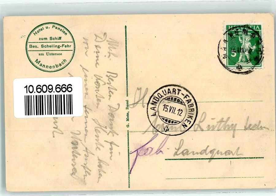 8268 Mannenbach-Salenstein 1912 - Hotel Pension Schiff
