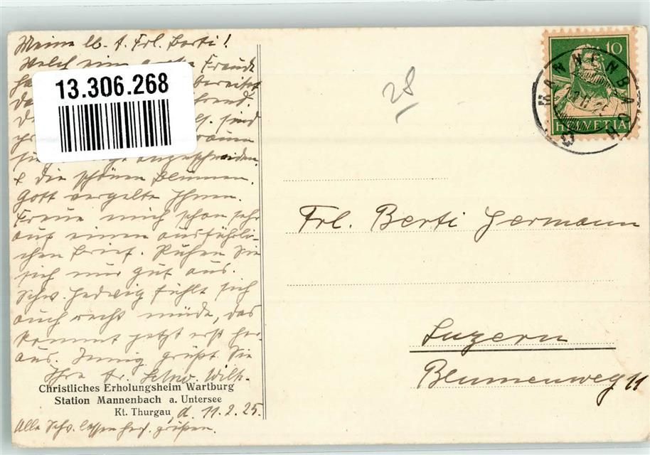 Mannenbach-Salenstein, Pension Christl. Erholungsheim Wartburg sign. Klein, L.