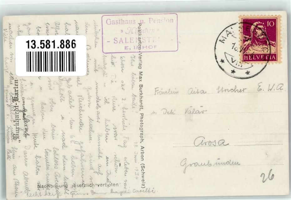 Salenstein, Auto Gasthaus Pension Hirschen Ort lt. Stempel