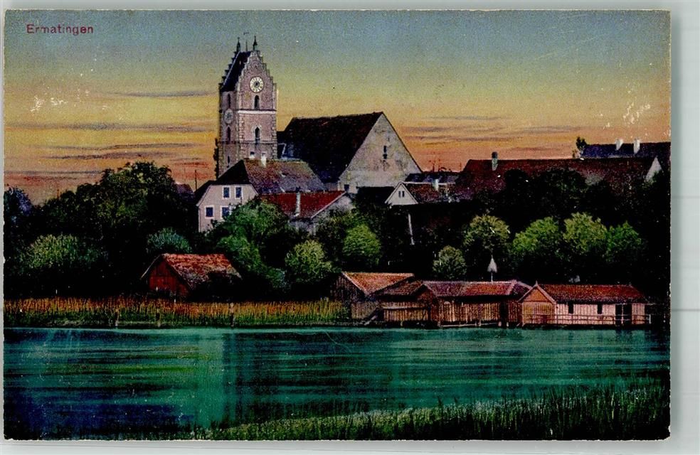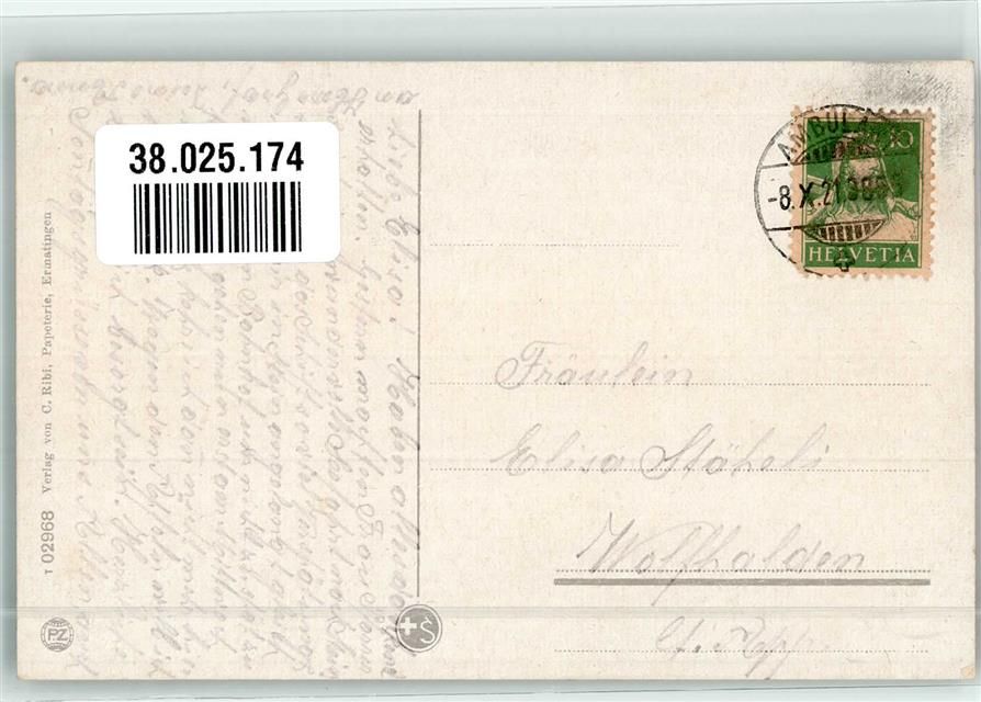 8272 Ermatingen 1921 Foto AK Kirche Bahnpost Zug 3853