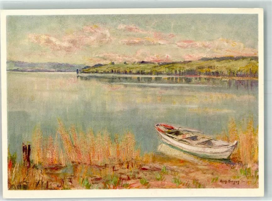 8272 Ermatingen Künstlerkarte sign. Herzog Ruderboot Untersee