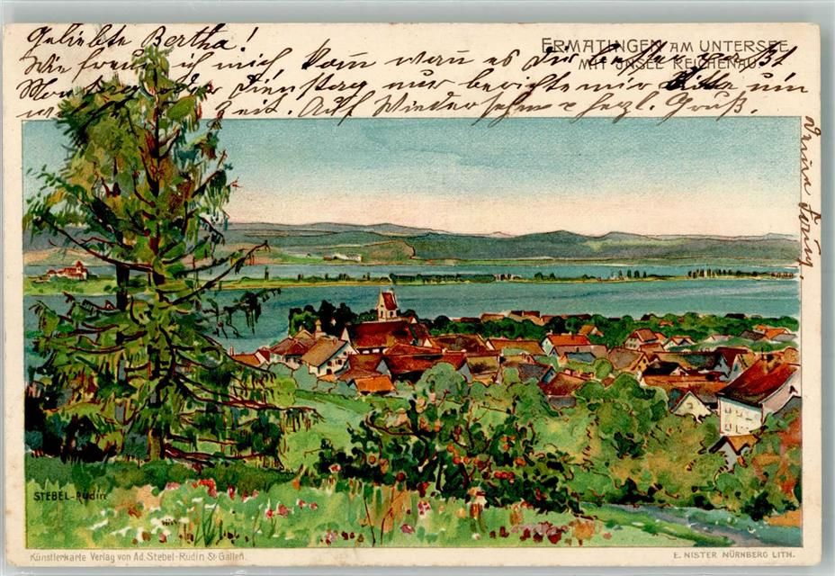 Ermatingen, sign. Stebel-Rudin Insel Reichenau Künstlerkarte