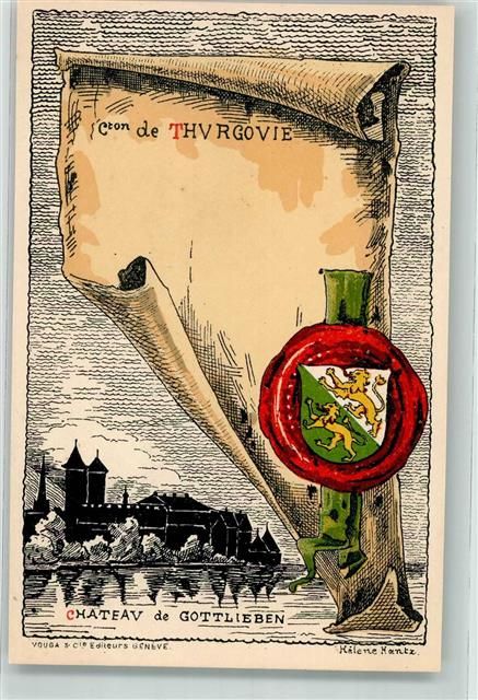 8274 Gottlieben Künstlerkarte sign Hantz Helene Schloss Urkunde Siegel Wappen
