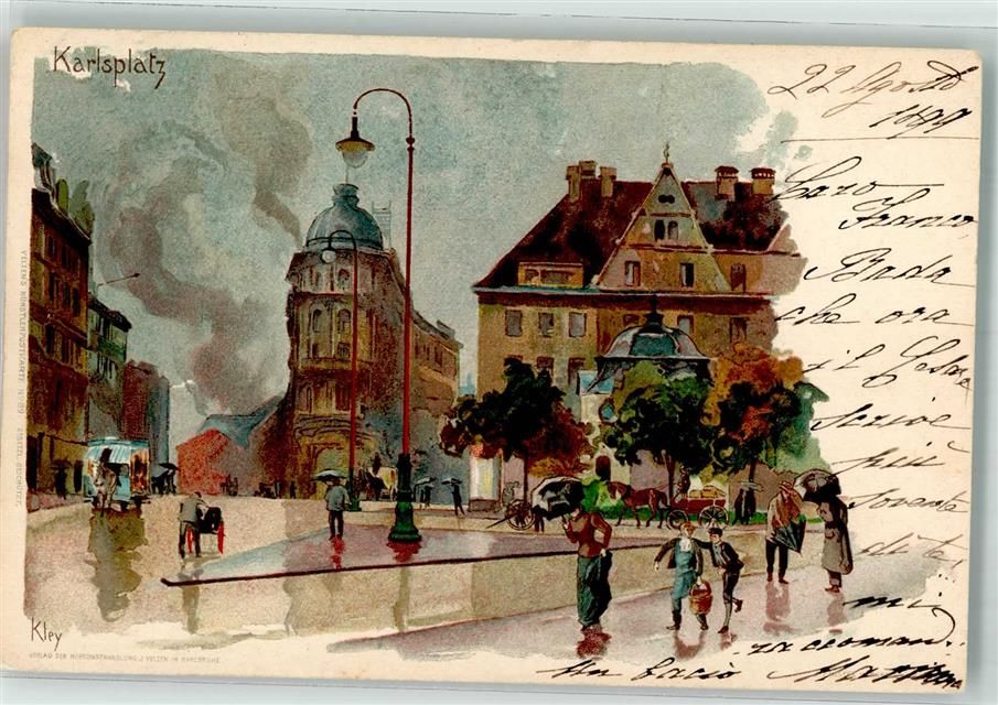 8280 Kreuzlingen 1899 Künstlerkarte sign. Kley Karlsplatz Ort lt. Stempel