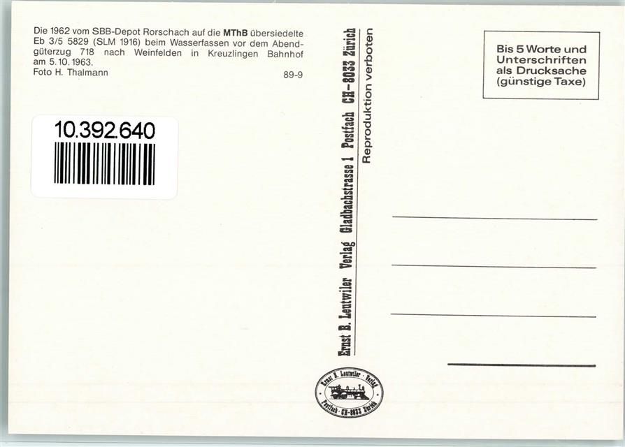 Kreuzlingen, Die 1962 vom SBB Depot Rorschach auf die MThB übersiedelte Eb 3/5 5829 SLM 1916 beim Wasserfassen vordem Abendgüterzug 718 nach Weinfelden im Bahnhof
