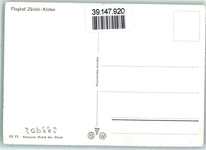 Kloten, 151 Fl. Photoglob-Wehrli Fliegeraufnahme AK