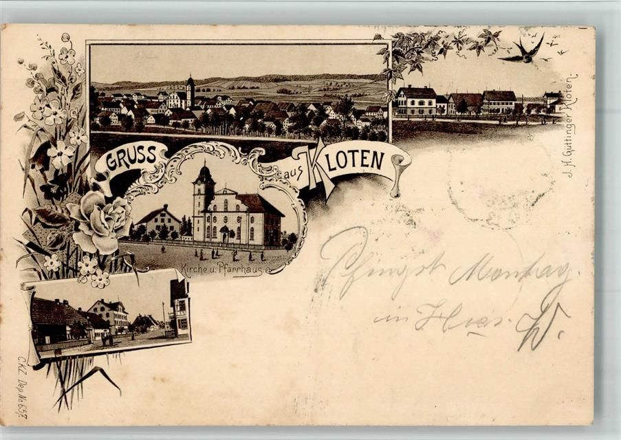 Kloten, Bahnpost Strecke 13 Zug 54 Lithographie