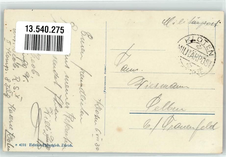 8302 Kloten 1930 - LKW Kaserne Waffenplatz Feldpost Militärpost