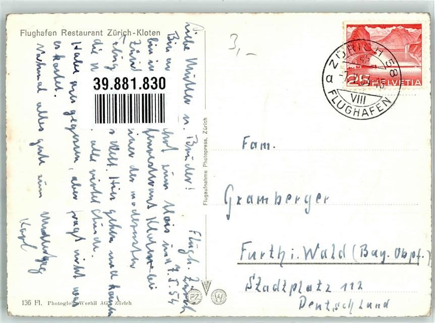 8302 Kloten 1954 Foto AK Verlag Photoglob FL 136 Propellermschinen Tower