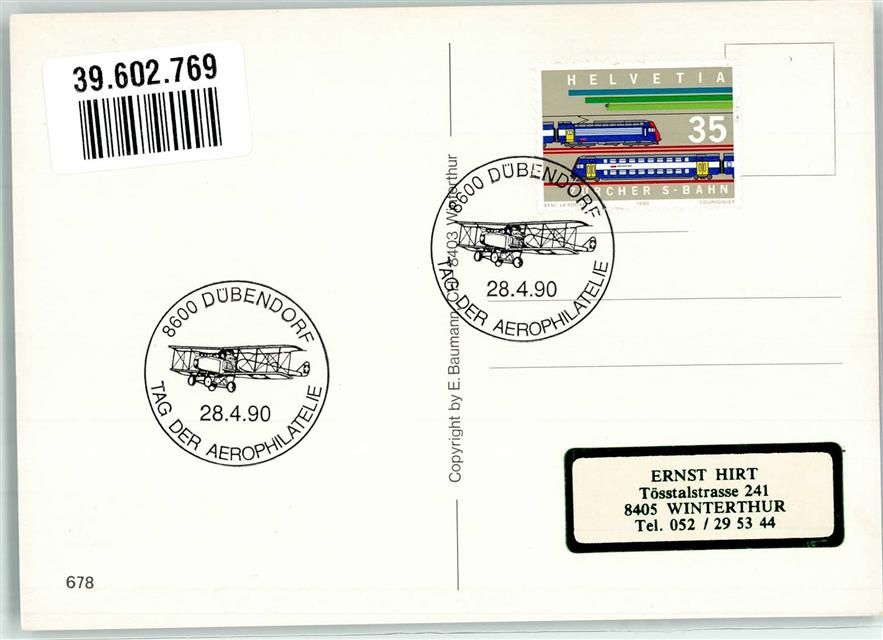 Kloten, Swissair Jumbo Jet Sonderstempel Tag der Aerophilatelie 1990