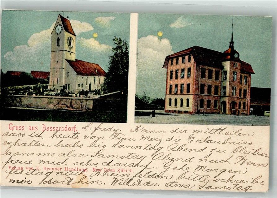 8303 Bassersdorf 1906 Mondschein Kirche