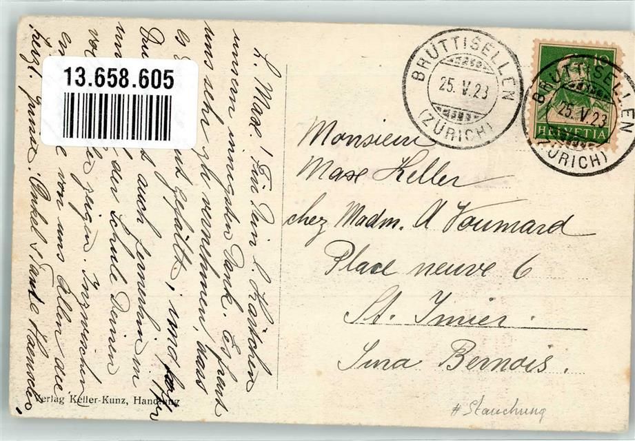 8306 Brüttisellen 1923 Gebrauchsspuren Postamt Schuh- Fabrik