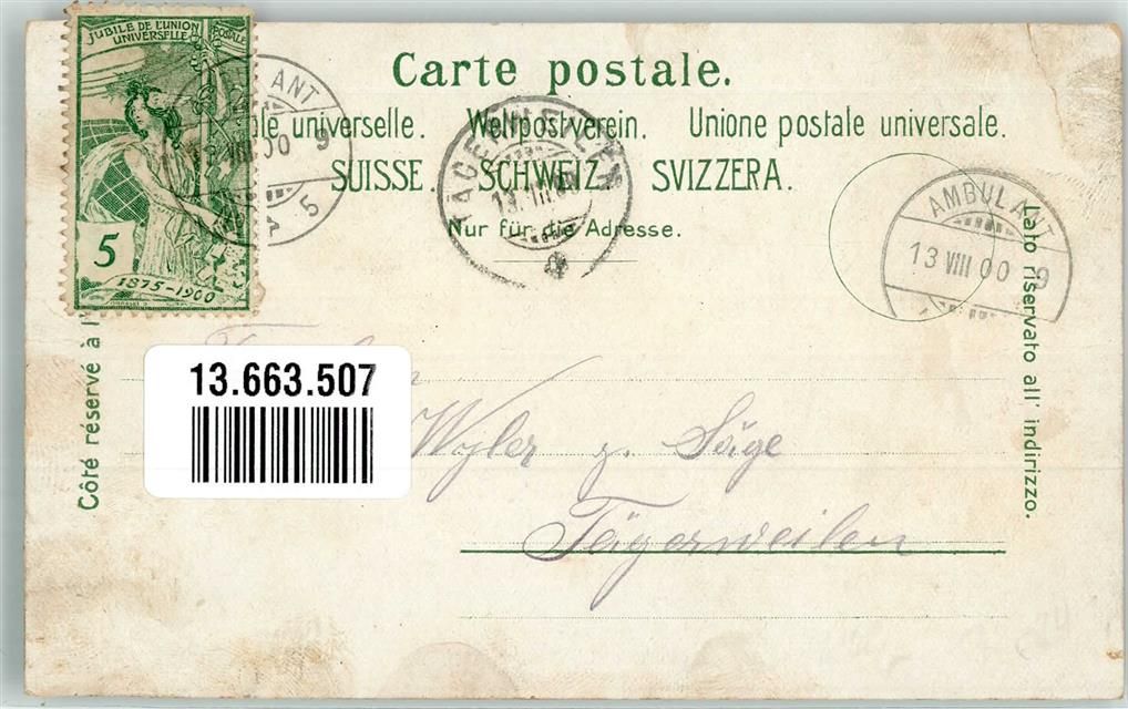8307 Oberkempttal Effretikon 1900 Gebrauchsspuren Fabrik Maggi Gasthaus zur Haffnermühle Lithographie Bahnpost Zug 9