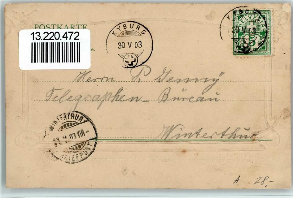 8314 Kyburg 1903 Passepartout Prägedruck Lithographie
