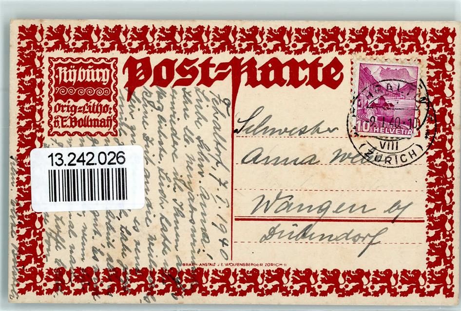 8314 Kyburg Künstlersteindruck sign E. Bollmann