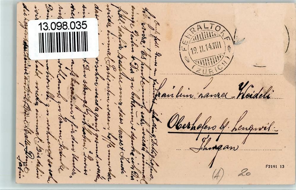 8320 Fehraltorf 1914 Gebrauchsspuren Straßenpartie mit Kirche AK