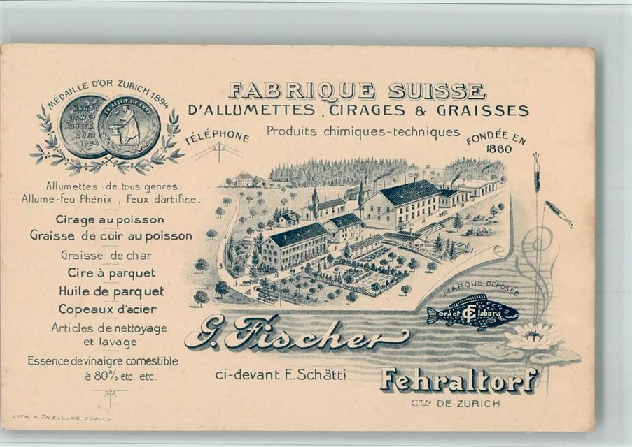 8320 Fehraltorf BOAKC Fabrik Fischer Vorläufer Druck um 1890 KEINE ANSICHTSKARTE