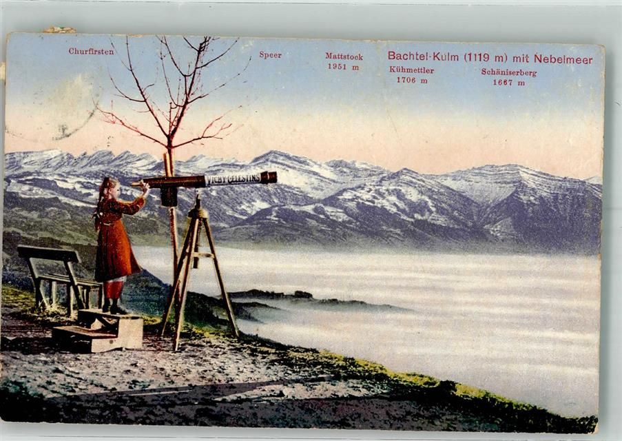 8342 Wernetshausen 1914 Foto AK Fernrohr Mädchen Bachtel-Kulm Nebelmeer
