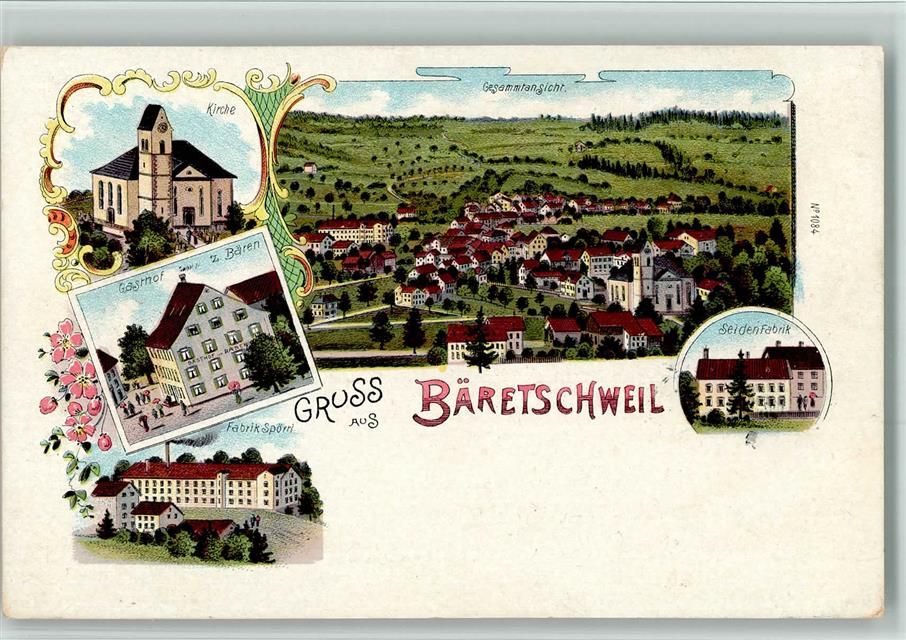 Bäretswil, Fabrik Spörri Gasthaus Bären Lithographie