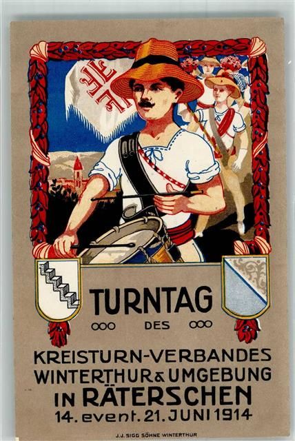 8352 Räterschen 1914 Lithographie Turntag Kreisturn-Verbandes Winterthur u. Umgebung 14.-21.6.1914