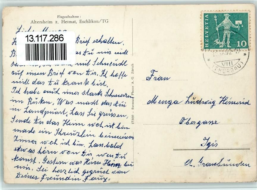 8360 Eschlikon TG Gebrauchsspuren Fliegeraufnahme Altersheim z. Heimat