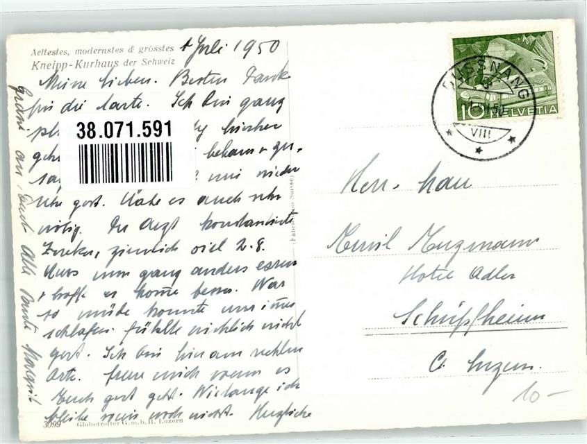 8374 Dussnang 1950 Foto AK Hotel Kur- und Wasserheilanstalt
