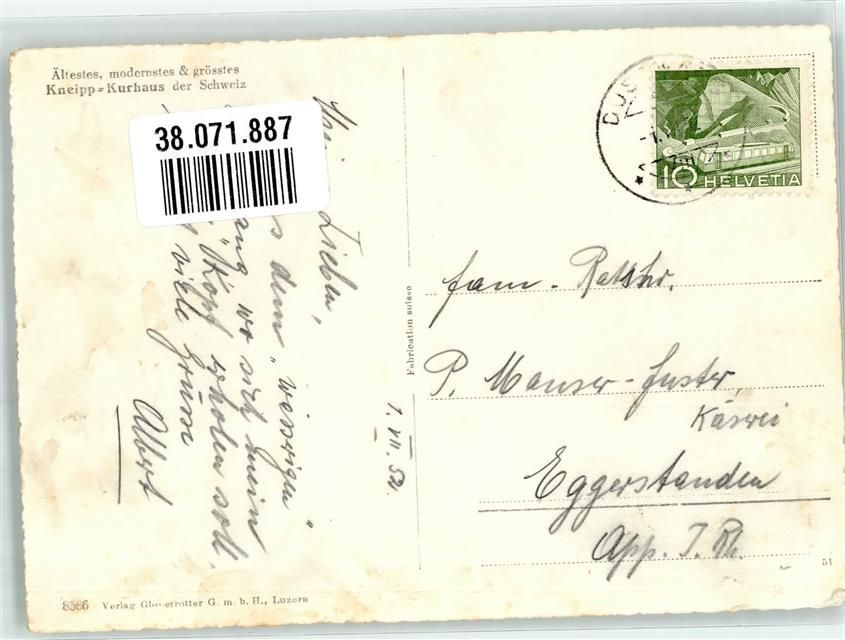 8374 Dussnang 1952 Foto AK Park Kurhaus