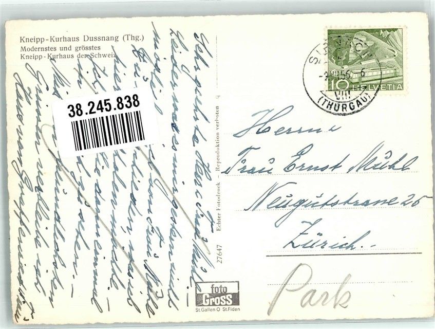 8374 Dussnang 1956 Foto AK Parkanlagen