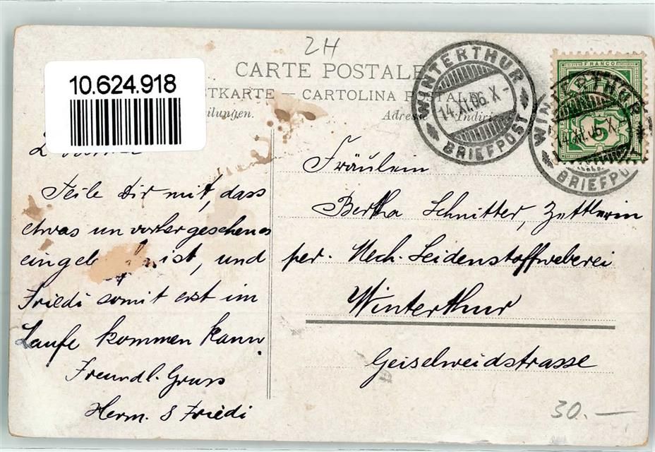 8400 Winterthur 1906 Gebrauchsspuren Bahnhofplatz