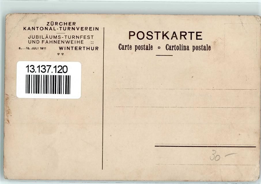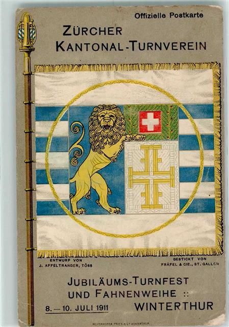 8400 Winterthur 1911 Gebrauchsspuren Zürcher Kantonal-Turnverein Jubiläums-Turnfest und Fahnenweihe Fahne