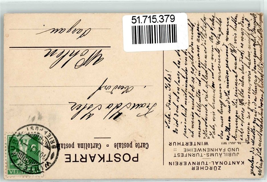 8400 Winterthur 1911 - Jubiläums-Turnfest Fahnenweihe Züricher Kantonal-Turnverein sign. Herzog